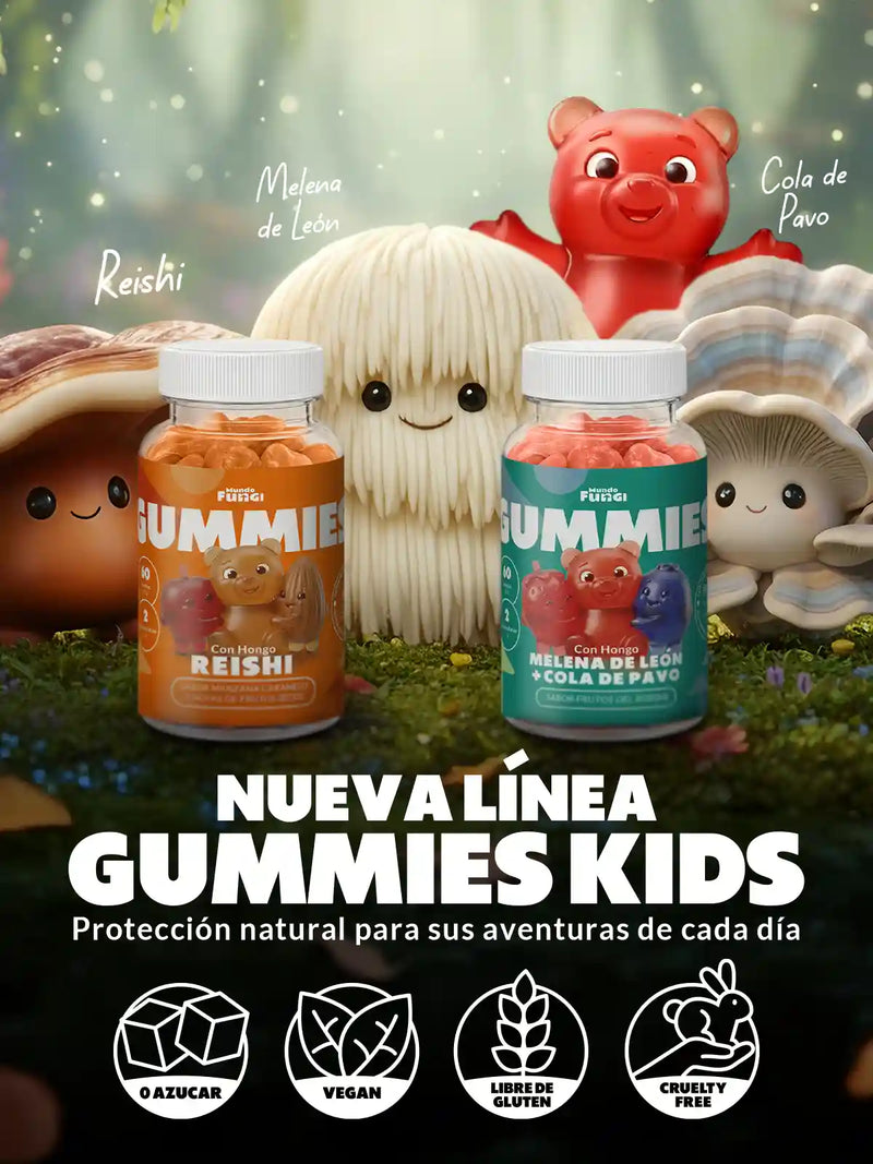 Elige el hongo medicinal que más se adapte a tus necesidades. Todos nuestros productos están disponibles en formato de suplemento ultraconcentrado y en gomitas de hongo 100% naturales, sin químicos ni pesticidas. Calidad garantizada para tu bienestar diario.