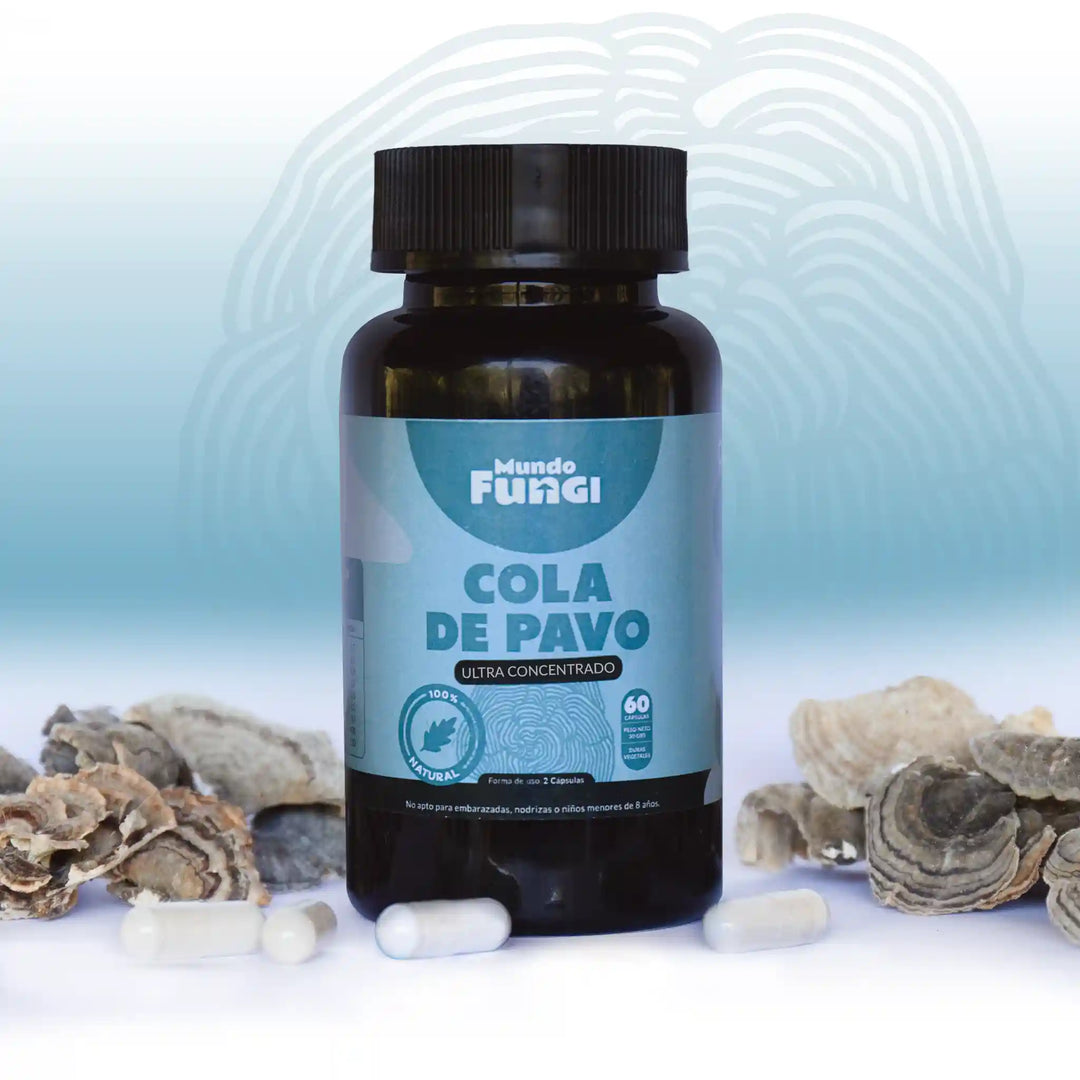Por esta razón, Mundo Fungi trae lo mejor de la seta cola de pavo, dando como resultado el contrapeso natural ideal para brindar un empujon extra al fortalecimiento de las defensas y recuperar el orden interno de nuestro sistema inmunitario.