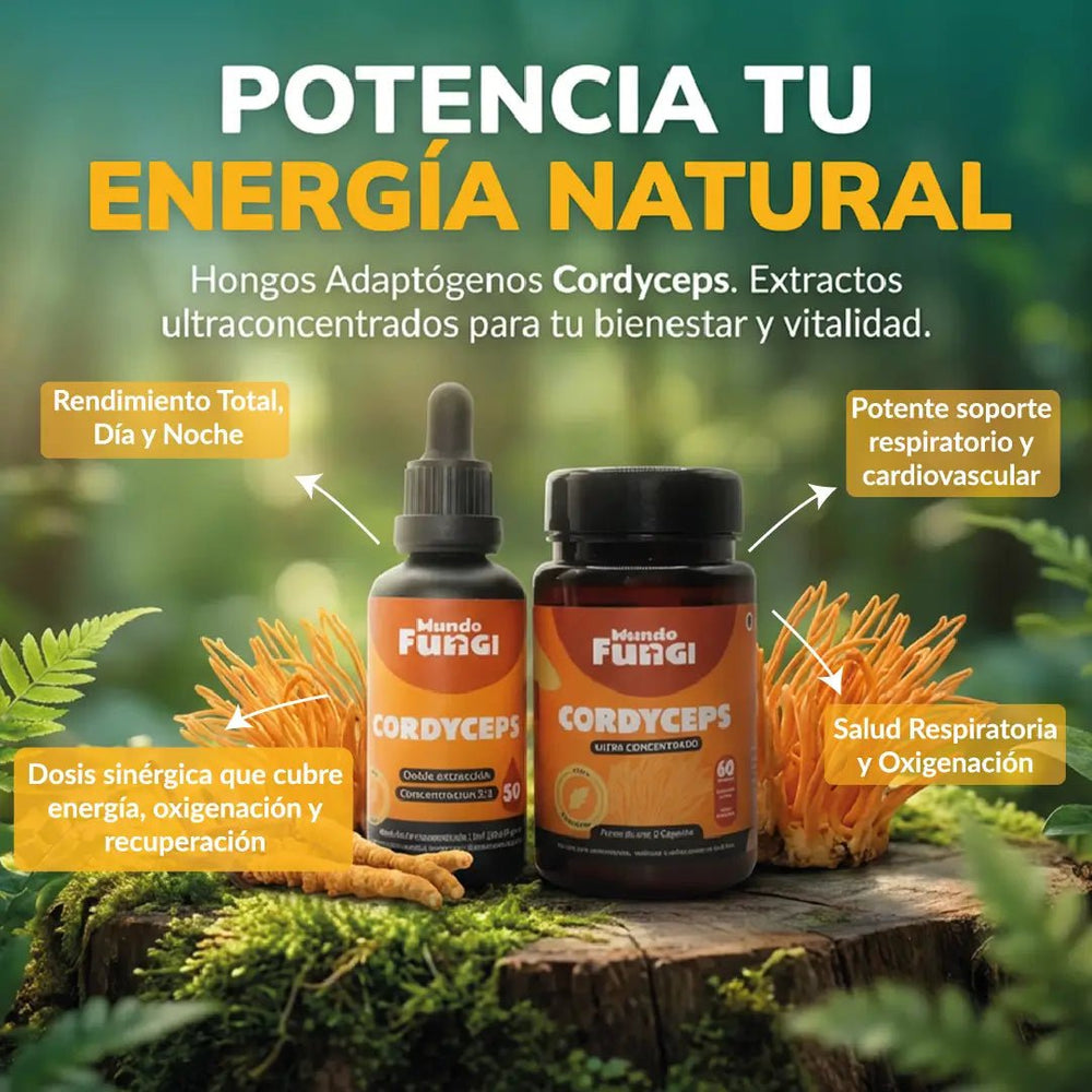 El Cordyceps es un hongo medicinal reconocido por sus propiedades energéticas y adaptógenas. Tradicionalmente usado en la medicina oriental, hoy destaca como suplemento natural para mejorar la resistencia física, la oxigenación y el rendimiento mental.